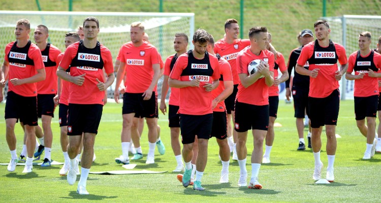 Piłkarze reprezentacji Polski podczas treningu w Arłamowie, 1 kwietnia br. Od lewej: Paweł Dawidowicz, Artur Jędrzejczyk, Marcin Kamiński, Kamil Glik, Sławomir Peszko, Bartosz Bereszyński, Arkadiusz Milik, Piotr Zieliński i Dawid Kownacki. Fot. Darek Delmanowicz/PAP