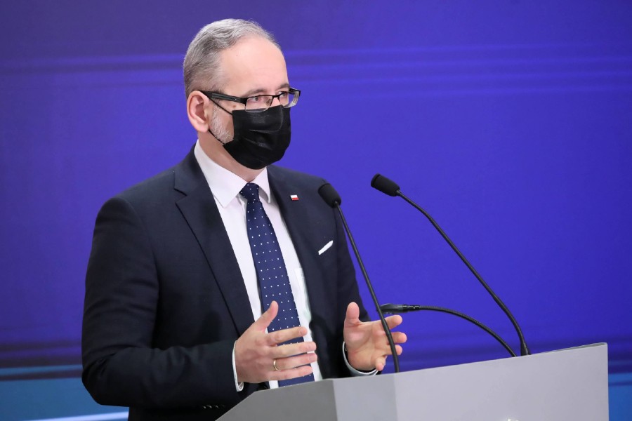 Koronawirus w Polsce. Minister zdrowia Adam Niedzielski podczas konferencji prasowej w siedzibie resortu w Warszawie. Fot. Tomasz Gzell/PAP