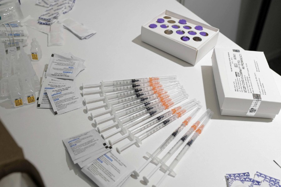 Szczepionki Comirnaty (Pfizer/BioNTech) w punkcie wakcynacji w Izbie Tradycji Kopalni Ziemowit w Lędzinach. Fot. Andrzej Grygiel/PAP