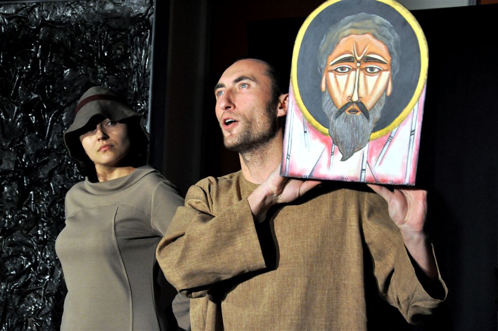 Symbole w tej sztuce wydają się sugerować też dwoistość bycia i dwoistość wiary, przywołując myśl filozoficzną Marcina Bubera, choć on porównywał chrześcijaństwo z judaizmem, a Nowosielski był zawieszony kulturowo między katolicyzmem i prawosławiem. Jednak sądzę że, może przypadkiem, Nowosielski i Pokrywka są tu bliżej Lévinasa niż innych filozofii. W moim odczuciu, perspektywa człowieka, jego relacji Ja-Ty, cielesności i śmierci, w anturażach narodowościowych i historycznych, to dominująca myśl tego spektaklu.