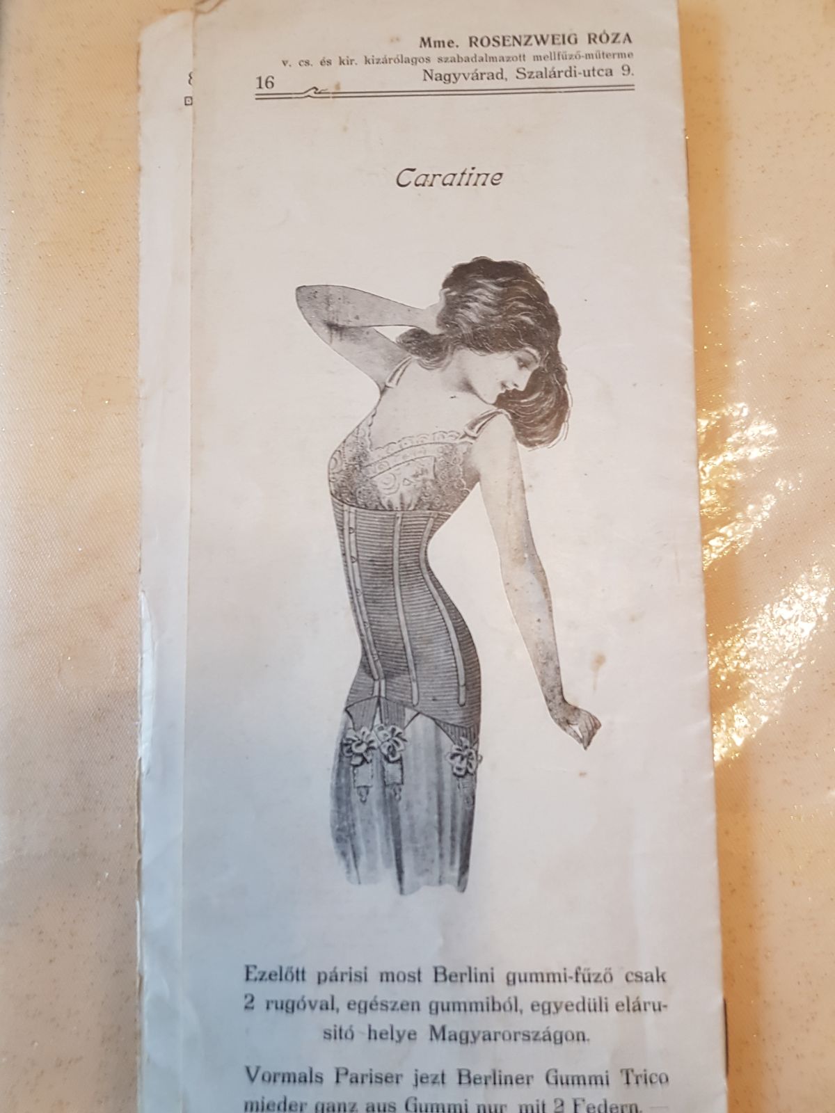 Około roku 1908, po odpowiednim szkoleniu i odpracowaniu tej edukacji u ciotki Esty, która wkrótce stanie się też jej szwagierką, Rosa wyrusza na poszukiwanie miejsca, gdzie mogłaby poprowadzić samodzielny interes gorseciarski. Wybiera Nagyvárad na Węgrzech, blisko granicy z Rumunią. Tam nie ma jeszcze interesu Goldsteinów ani Rosenzweigów. No i tamtejszym kobietom brakuje porządnych gorsetów. Wkrótce Rosa zatrudnia około trzydzieści pięć pracownic, bo ma coraz więcej klientek. Wydaje awangardowe katalogi mody, w których prezentuje swoje autorskie gorsety. „Mme Rosenzweig Róza”, „Nagyvárad, Szalárdi-utca 9”, „Eredeti Rosenzweig modell”, „Ezelőtt párisi most Berlini gumi-fűző csak 2 rugóval, egészen gummiból, egyedül elárusító helye Magyarországon”. Jest znana w całym mieście, wzbudza podziw i szacunek. Jest kobietą interesu, obywatelką Węgier, zagorzałą syjonistką, żoną i matką, a po latach też szczęśliwą babką.
