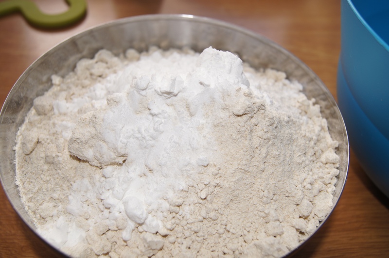 Drugą połowę przekładamy do dużej miski i dodajemy mieszankę mąk i soli składniki. Warto z mąki zostawić sobie ok szklanki na później do wyrobienia. Ja wsypałam najpierw mieszankę mąk i soli i potem dolewałam wodę tak żeby kontrolować konsystencję. Ma być to konsystencja podobna do "gęstych powideł śliwkowych":)
