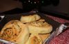 Jak ciasto znów podwoi swoją objętość wykładamy je na posypana mąką stolnicę i wyrabiamy kolistymi ruchami tak jak ciasto na pierogi podsypując mąką na ile jej wchłonie. Jak ciasto jest gładkie wałkujemy na duży prostokąt. Smarujemy je cebulą z masłem i ziołami i zawijamy w rulon jak roladę. Kroimy na paski ok 3 cm i układamy na wyłożonej pergaminem lub matą silikonową tacce. Ważne - układamy płasko, tak że wychodzą takie rollki. Można jeszcze posmarować po wierzchu rozbitym białkiem (ja nie posmarowałam bo zapomniałam) :)