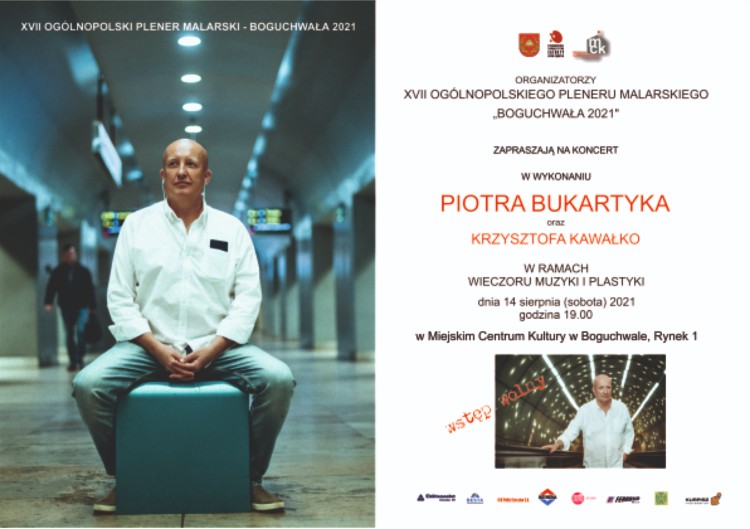 Od 8 sierpnia w sąsiedztwie Rzeszowa trwa  XVII Ogólnopolski Plener Malarski Boguchwała 2021. Obecność artystów to nie tylko okazja do podziwiania sztuk plastycznych, ale i do spotkania z muzyką. - Co roku, podczas malarskiego pleneru organizujemy wieczór muzyki i sztuki, na który zapraszamy różnych artystów. W poprzednich latach występował na nim m.in. Józef Skrzek, Tadeusz Woźniak, a tym razem to zaproszenie przyjął Piotr Bukartyk, osobowość bardzo ważna dla tych, którzy cenią sobie w piosence dobry tekst i  niebanalną myśl. Koncert zagra w sali widowiskowej Miejskiego Centrum Kultury w Boguchwale, gdzie mieści się około 200 osób – informuje Jacek Nowak z Podkarpackiego Towarzystwa Zachęty Sztuk Pięknych, który wraz ze współorganizatorami pleneru - Gminą Boguchwała i Miejskim Centrum Kultury w Boguchwale, zaprasza na sobotni koncert.