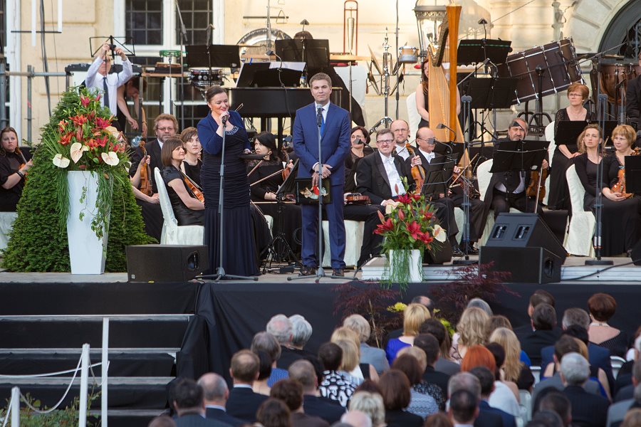 Koncert plenerowy José Carrerasa i Natalii Kovalovej zainaugurował w sobotę 53. Muzyczny Festiwal w Łańcucie. Zanim jednak zabrzmiała muzyka, ponad 3 tys. melomanów oczekiwało pojawienia się na scenie jednego z najsłynniejszych, współczesnych tenorów. Oficjalne powitania i podziękowania dla sponsorów, oraz wystąpienie prowadzącego koncert, Marka Zająca zajęły prawie pół godziny, aż w końcu pojawiła się na scenie orkiestra Filharmonii Podkarpackiej, oraz dyrygent David Gimenez.