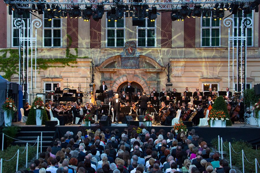 Po instrumentalnym wstępie naszych filharmoników na scenę wszedł sam José  Carreras. Brzmienie głosu artysty być może zaskoczyło niektórych słuchaczy – dziś Carreras ma niższy i głębszy w brzmieniu timbre. Szczególnie pięknie zabrzmiały w wykonaniu mistrza arie „El Eco De Tu Voz” i „Pel Ten Amor”. Powoli zapadał wieczór, a muzyka ogarnęła całą przestrzeń - widownię zgromadzoną przed łańcuckim pałacem i tę, która słuchała koncertu ulokowawszy się na krzesełkach turystycznych i kocach przed zamkową fosą.