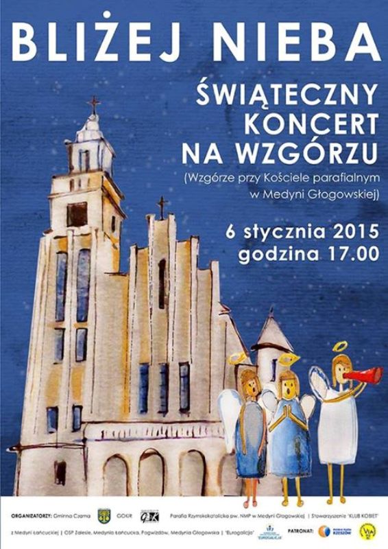 Już kolejny raz w święto Trzech Króli ( we wtorek, 6 stycznia) na wzgórzu przy kościele parafialnym w Medyni Głogowskiej odbędzie się koncert „Bliżej Nieba”. Wspólne śpiewanie kolęd i pastorałek oraz inscenizacja „Narodzenie Pana” rozpoczną się o godz. 17.00.