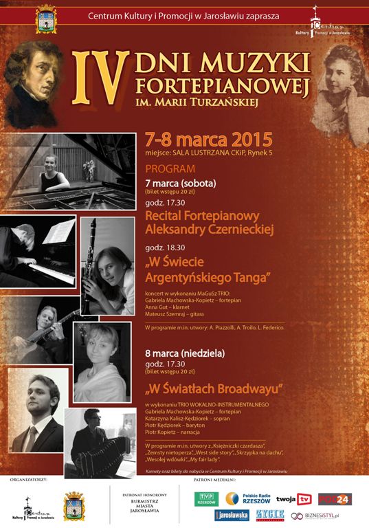 Ambitna muzyka niszowa, frywolne brzmienia i uroczyste melodie będą rozbrzmiewać na początku marca w sali lustrzanej jarosławskiego Centrum Kultury i Promocji, gdzie odbędą się IV Dni Muzyki Fortepianowej im. Marii Turzańskiej.