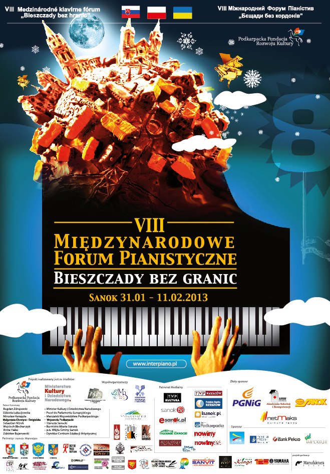 Ale forum to również wspaniała uczta dla melomanów i niepowtarzalna okazja, by usłyszeć największych wirtuozów fortepianu oraz wybitnych muzyków-pedagogów należących do światowej pierwszej ligi. W tym roku organizatorzy rozszerzyli formułę imprezy, stąd w Sanoku pojawią się muzycy instrumentów dętych. Usłyszymy więc: Jadwigę Kotnowską - znakomitą polską flecistkę, której recital mistrzowski w piątek 1 lutego o godz. 17 otworzy imprezę; wspomnianego Gary’ego Guthmana, o którym mówi się, że gra na trąbce jak anioł Gabriel (koncerty mistrza w dniach 5 i 7 lutego o godz. 19); pianistę Jarosława Drzewieckiego, jurora krajowych i międzynarodowych konkursów muzycznych; oraz jego syna - fenomenalnego Stanisława Drzewieckiego.