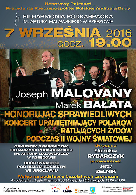 Dzień później, we środę o godz. 19 chór wystąpi w Filharmonii Podkarpackiej, gdzie publiczność usłyszy koncert upamiętniający Polaków Ratujących Żydów podczas II wojny światowej. W sali filharmonii zagra również orkiestra symfoniczna pod batutą Stanisława Rybarczyka, wystąpią także: Joseph Malovany (kantor) i Marek Bałata (śpiew). Koncert poprowadzi Jerzy Zelnik.