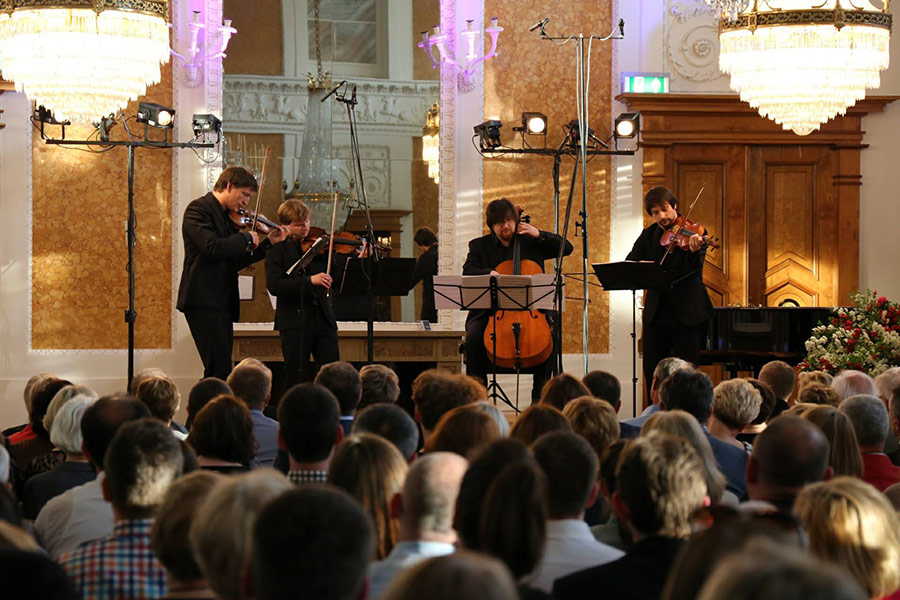 Założony w 2006 r. już po dwóch latach działalności osiągnął światowy sukces wygrywając prestiżowy, 57.Międzynarodowy Konkurs ARD w Monachium. Apollon Musagete Quartet założyli w Wiedniu młodzi, polscy wioliniści z zamiarem zdobycia światowej sceny muzyki kameralnej. Pobierali lekcje indywidualne i zespołowe u największych sław, m.in. legendy kameralistyki Alban Berg Quartett. Dziś należą do ścisłej czołówki tego typu zespołów, a imię Apollon nieprzypadkowo znalazło się w nazwie zespołu. We wszystkich miejscach swojego koncertowania muzycy szukają atrybutów starożytnego opiekuna muz. W Łańcucie też znaleźli- w zdobieniach Sali Balowej łańcuckiego Zamku wypatrzyli harfę Apollona!