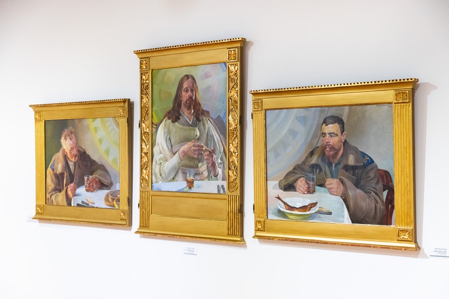 - Na wystawie jest 21 autoportretów, ale wszystkich prac 23, ponieważ oglądamy też tryptyk Malczewskiego „Wieczerza w Emaus” z 1909 roku – mówi Maria Stopyra z Muzeum Okręgowego w Rzeszowie, kurator wystawy. – Dzieło nawiązuje do tematu z Nowego Testamentu i jest czytelną aluzją do dziejów narodu polskiego oraz Powstania Styczniowego z 1863 roku. Artysta namalował siebie jako Chrystusa, a dwie towarzyszące mu postaci to „Zesłańcy-Sybiracy”, bezimienni bohaterowie powstańczego zrywu. W tej konkretnej pracy widać wpływ, jaki na Malczewskiego wywarła twórczość Artura Grottgera, jednego z czołowych przedstawicieli romantyzmu w malarstwie polskim.