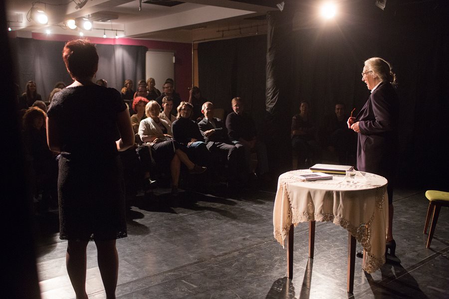 Dla Komorowskiej słowa są jak powietrze, są też narzędziem, którym potrafi zaczarować słuchaczy. – Cały dzień pracowałam nad kolejnością tekstów, tak byście się państwo nie nudzili, bo nie ma gorszej rzeczy, niż zanudzić rozmówcę – przekomarzała się z widzami Komorowska i spoglądała przy pełnym świetle na publikę, tak jakby z twarzy chciała wyczytać, co tym razem powinna zaproponować ze swoich trzech poetyckich teczek. Dlatego każdy z poetyckich wieczorów Mai Komorowskiej jest inny, ma różny czas trwania i różne wiersze w dialogu z widzem.