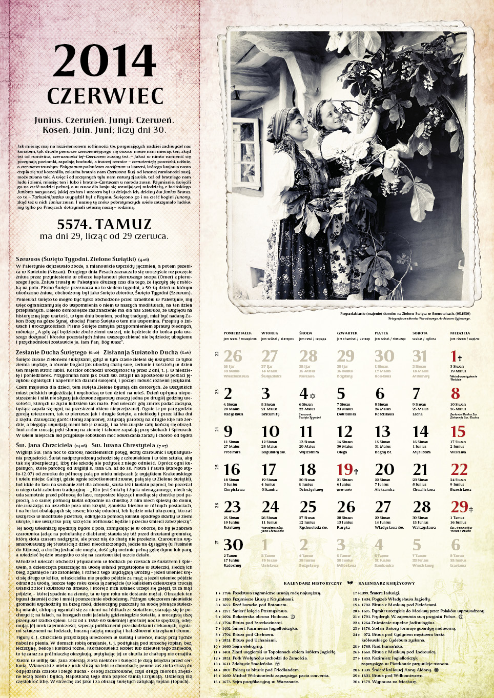 Tegoroczna publikacja została uzupełniona o Kalendarz historyczny, Kalendarz imion słowiańskich z roku 1827. Tekst „O kalendarzu” zaczerpnięto z Kalendarza Ilustrowanego Słowa Polskiego na rok zwyczajny 1903. Na kalendarium zaznaczono również główne święta rzymskokatolickie, grekokatolickie oraz żydowskie, a także wspomnienia ważniejszych Świętych - w obecnym brzmieniu, stosując współczesną pisownię.