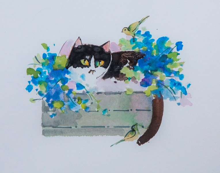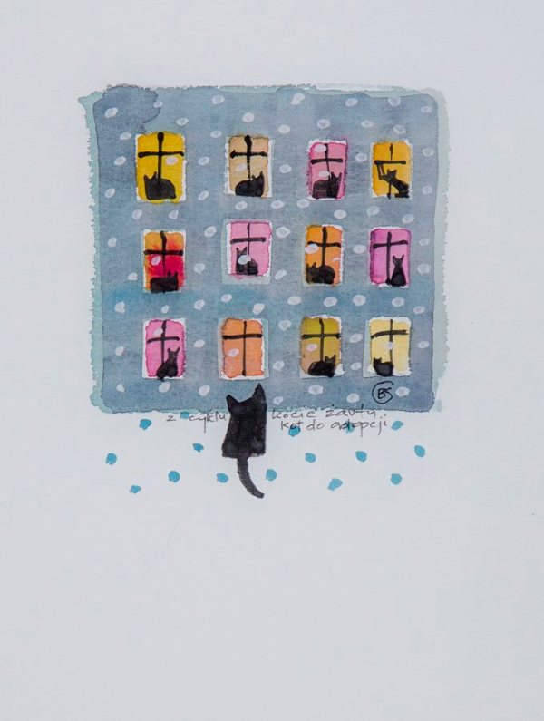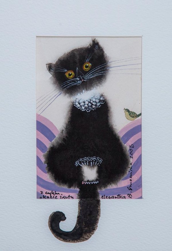 - Musi mnie coś zainspirować, aby powstała nowa praca – mówi Barbara Smoczeńska. Później te notatki przybierają kształt rysunku, gwaszu lub akwareli, które układają się w cykle np. „Kocie żarty”, „Dolce farniente” (słodkie nieróbstwo), „Koty ślubne” i wiele innych.