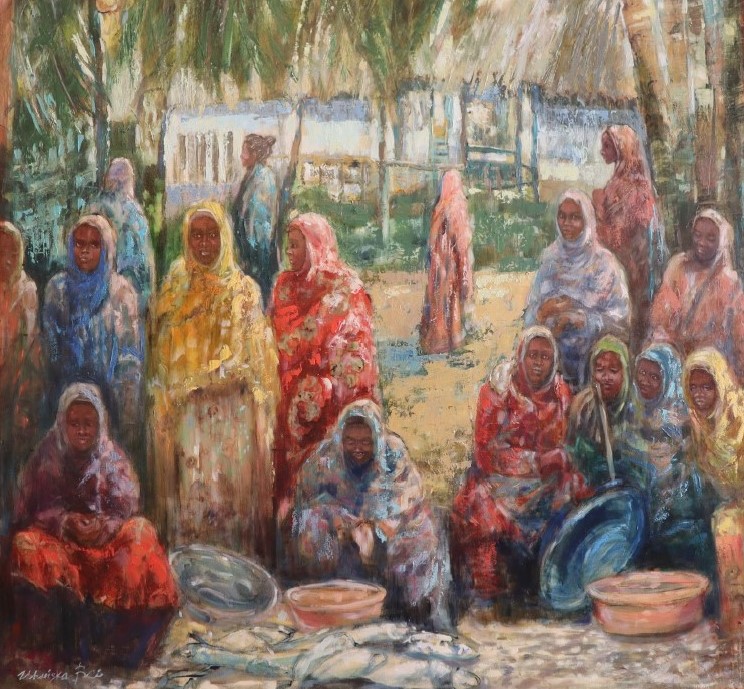 - Dominacja i afirmacja pobytu na Zanzibarze, zapisanego na karcie pamięci artystki – pisze w zapowiedzi wystawy Jacek Nowak. – Obrazy Iwony Urbańskiej-Bać powstały i powstają dla rozkoszy patrzenia, dla rozkoszy obcowania. Są jak lekarstwo w dobie zabiegania, depresji i niezrozumienia piękna, które mimo wszystko nas otacza. To jej wspomnienia z wyjazdów do córki Oliwki na Zanzibar. Zachody słońca, piaszczyste plaże, kobiety chowające się przed słońcem, owinięte w piękne tkaniny i dzieci bawiące się przed domem.