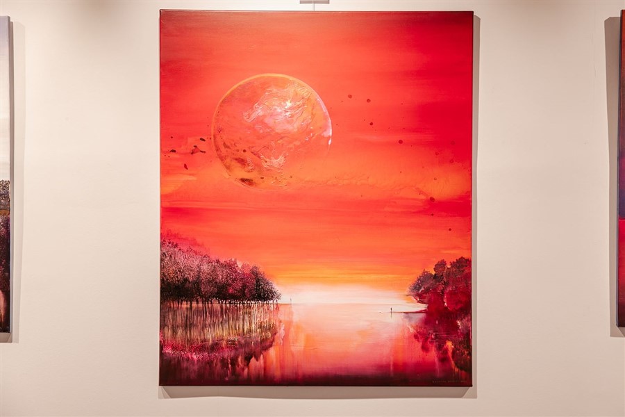 – Pejzaże maluję od wielu lat, natomiast cykl z kosmosem, planetami i „tzw. full moony” (jak tytułuje obrazy z księżycem w pełni, AB) rozpoczęłam w 2017 roku. Wtedy pierwszy obraz z tego cyklu zaprezentowałam w Krakowskim Domu Kultury na wystawie, do której swoich uczniów, zaprosił prof. Leszek Miąsik – wspomina Barbara Hubert, która właśnie w pracowni prof. Leszka Misiaka uzyskała dyplom ASP. – Na wystawę w Rzeszowskim Domu Sztuki przygotowałam obrazy, które łączą oba cykle. Na jednym płótnie umieszczam pejzaż i księżyc.