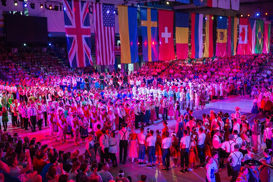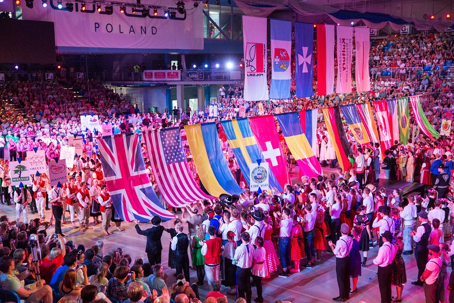Dwa koncerty, które tradycyjnie odbywają się pod koniec festiwalu, są największymi wydarzeniami i widowiskami tanecznymi odbywającej się co trzy lata spotkań Polonii. W trakcie poniedziałkowego występu zespoły pokazały folklor krajów, z  których przyjechali. W tym roku zmieniono zasady doboru repertuaru oraz nazwę, dotychczasowe „Tańce i pieśni krajów zamieszkania” zastąpiono „Folklorem narodów świata”. To znacznie poszerzyło wybór polonijnym zespołom i dzięki temu w programie znalazł się folklor bułgarski, rumuński, cygański, turecki. Takie urozmaicenie wprowadziły głównie grupy kanadyjskie, ponieważ Kanada nie ma własnego folkloru, poza tradycją indiańską, więc zespoły wybierały folklor narodów żyjących w miejscach skąd pochodzą. Poza tym było wiele tańców i pieśni z elementami etnicznymi, a także amerykańskie swing, lindy hop, western polka, country dance, oraz folklor rosyjski, ukraiński, czeski, szwajcarski.