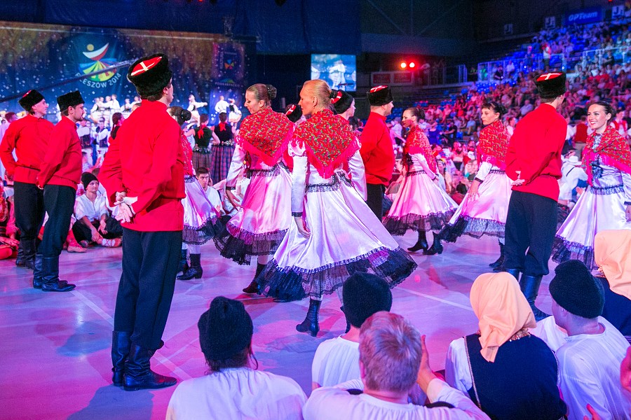 Folklor gruziński, turecki, cygański, tańce amerykańskie lat 20. i 30. XX wieku i wszystkich zakątków, z których przyjechali na XVI Światowy Festiwal Polonijnych Zespołów Folklorystycznych, zaprezentowali Polonusi podczas poniedziałkowego koncertu „Folklor narodów świata”. Barwne, ponad dwugodzinne, widowisko przyciągnęło tłumy do Hali Podpromie.