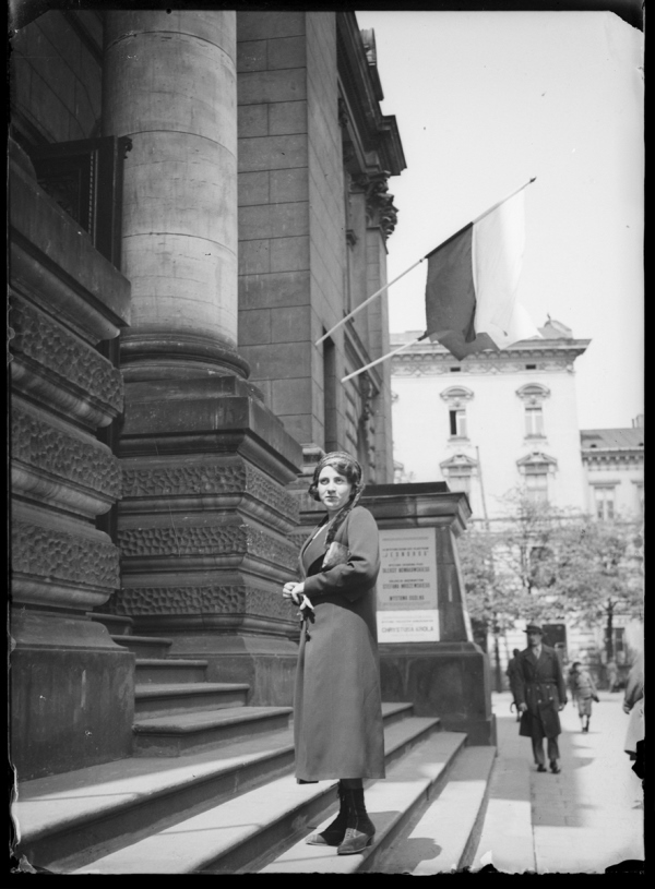 Fot. nr 30. Helena Stanisz u podnóża schodów prowadzących do gmachu Zachęty. Obecnie Narodowej Galerii Sztuki. Fot. Archiwum Galeria Fotografii Miasta Rzeszowa