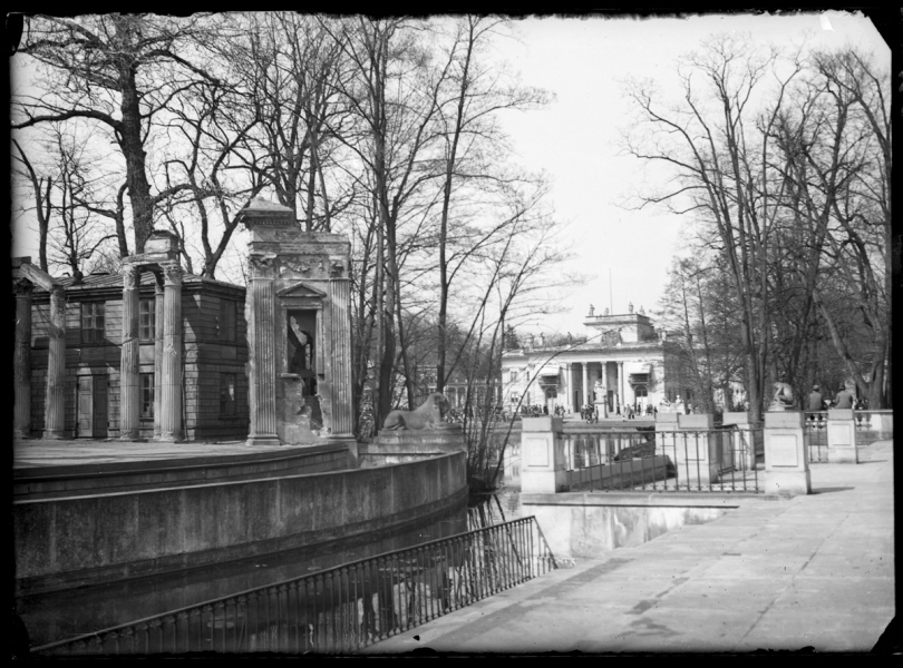Wczesną wiosną - sądząc po bezlistnych drzewach – robione były typowe "pamiątki ze stolicy": zdjęcia pałacu łazienkowskiego (fot. 17). Na zdjęciu nr 957 Helena stoi obok  barokowego wazonu zdobiącego do dziś park Łazienkowski. Inne ujęcie przedstawia pomnik Fryderyka Chopina (fot. 28). Wojna dopisała do ich historii tragiczne rozdziały. Podpalony jesienią 1944 r. pałacyk Stanisława Augusta Poniatowskiego stracił najcenniejsze zabytkowe wnętrza. Mimo że w jego murach wywiercono 1 tysiąc otworów do włożenia ładunków dynamitu Łazienki cudem ocalały. Ich odbudowę zakończono dopiero w 1965 r. Pomnik Fryderyka Chopina – dzieło Wacława Szymanowskiego – nie miał tego szczęścia. Pocięty przez okupanta na kawałki w 1940 r. został przetopiony. Zadziwiająca była zaciekła wrogość żołnierzy z Niemiec - ojczyzny najwybitniejszych kompozytorów wobec Chopina jako artysty. Zrekonstruowany po wojnie pomnik został odsłonięty ponownie w 1958 r.