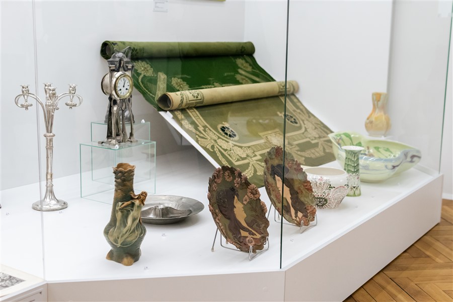 Wśród artefaktów falistą linią zwracają uwagę patery, kandelabry, dzbanki - wykonane ze srebra czy cyny, która wtedy zrobiła karierę. Także ceramiczne talerze zdobione na wzór obrazów Alfonsa Muchy. Obok nich wyeksponowano secesyjne kapy, a także sztambuchy w niepowtarzalnych oprawach i pełne zdjęć, które przypominają, że na przełomie wieków fotografia święciła wielki tryumf.