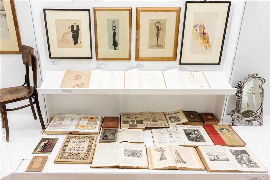 Osobną gablotę poświęcono grafice i dziełom sztuki poligraficznej. W tamtym czasie ogromny sukces odniósł Kazimierz Sichulski, malarz i rysownik, profesor krakowskiej ASP, współtwórca kabaretu Zielony Balonik, który wykonywał karykatury osób związanych z Krakowem, warto więc zwrócić uwagę na jego prace. Podobnie na pełne artyzmu wydania książek czy dopracowane strony z Tygodnika Ilustrowanego.