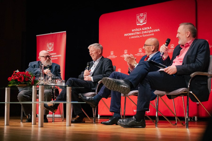 „Super”, „ekstra”, „mega”, a może po prostu „Essa” – ulubione słowa młodego pokolenia Polaków i nie ma co się zżymać, że język polski ubożeje. Wręcz przeciwnie, język z każdym rokiem jest bogatszy – o słowa z przeszłości i przyszłości, ale mowa, owszem, staje się uboższa. „O współczesności i przyszłości języka polskiego” dyskutowali w Filharmonii Podkarpackiej prof. Jerzy Bralczyk i prof. Jan Miodek w ramach spotkań „Wielkie pytania w Nauce” organizowanych przez Wyższą Szkołę Informatyki i Zarządzania w Rzeszowie. Debatę prowadził znakomity publicysta „Tygodnika Powszechnego” red. Wojciech Bonowicz.