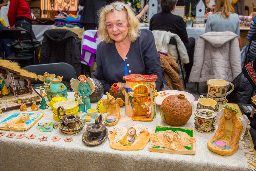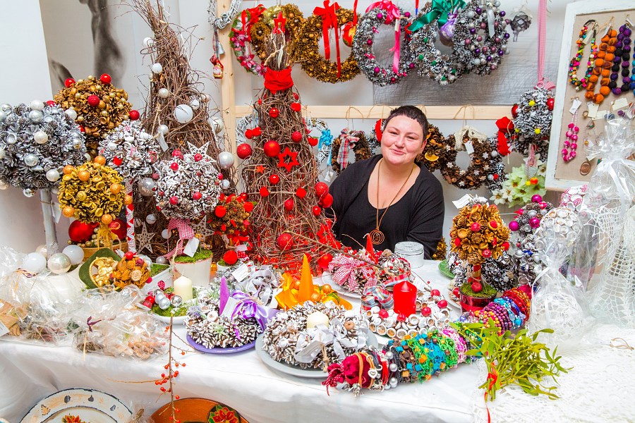 Na kiermaszu można kupić produkty hand-made nie tylko związane z świętami Bożego Narodzenia. Wśród wystawców swoje stoisko prezentują Bożena Pelczar i Edyta Kustroń z okolic Krosna, dwie koleżanki, które wspólnie zajmują się projektowaniem i szyciem odzieży z wełny filcowanej na mokro. Kupić u nich można oryginalne płaszcze, torebki, kapelusze, a także przepiękne kolorowe szale. - Zaletą takich ubrań i dodatków jest ich oryginalność i niepowtarzalność. Wszystkie są robione ręczne, co jest bardzo pracochłonne - mówi Edyta Kustroń. Właścicielki stoiska przyznają, że ich produkty cieszą się dużym zainteresowaniem i znajdują na nie nabywców, mimo że ceny wcale nie należą do niskich.