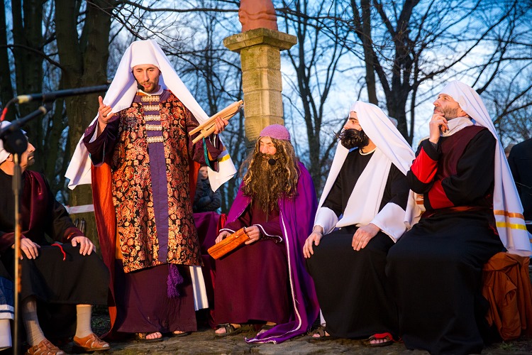 Wykonawców wsparli Krzysztof Drążek i Mateusz Surówka, czyli Jezus i Judasz z cieszącego się swego czasu olbrzymią popularnością Misterium Męki Pańskiej w Babicy (jego ostatnia edycja miała miejsce w 2007 r.). Krzysiek po latach znów „zagrał” Jezusa, natomiast Mateusz – Kajfasza. – Ksiądz z Niechobrza mnie poprosił, a ja nie odmówiłem – opowiada „Jezus”. Przyznaje, że było trochę inaczej niż w Babicy -  nie znał tak dobrze ukształtowania terenu w Niechobrzu, nie znał też większości aktorów. – Starałem się jednak zagrać jak najlepiej – podkreśla.