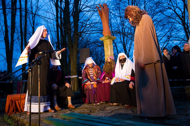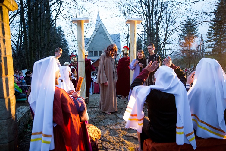 Ok. 50 aktorów-amatorów wzięło udział w Misterium Męki Pańskiej, zorganizowanym w Niedzielę Palmową na terenie sanktuarium Matki Bożej Nieustającej Pomocy w Niechobrzu k. Rzeszowa. Mękę i śmierć Chrystusa z przejęciem obserwowało kilkuset uczestników, a wśród nich bp Edward Białogłowski.