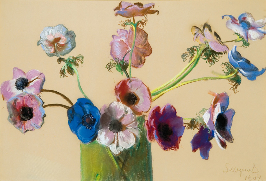 Obrazy kwiatów i ptaków - temat tak chętnie podejmowany przez artystów Młodej Polski - widoczne są we wszystkich stosowanych przez Wyczółkowskiego technikach, zarówno w obrazach olejnych, pastelach, akwarelach jak i grafikach. Wyczółkowski portretował kwiaty tak samo jak ludzi, celnie ukazując ich cechy charakterystyczne. Interesował się rozmaitymi gatunkami kwiatów oraz krzewów, zarówno tymi pospolitymi, jak i egzotycznymi: kaczeńcami, dziewannami, fiołkami, piwoniami, anemonami i irysami. Umieszczał je w dekoracyjnych wazonach na tle wschodnich tkanin lub w pustej, neutralnej przestrzeni. Obrazy kwiatów należą do najbardziej charakterystycznych w jego twórczości.