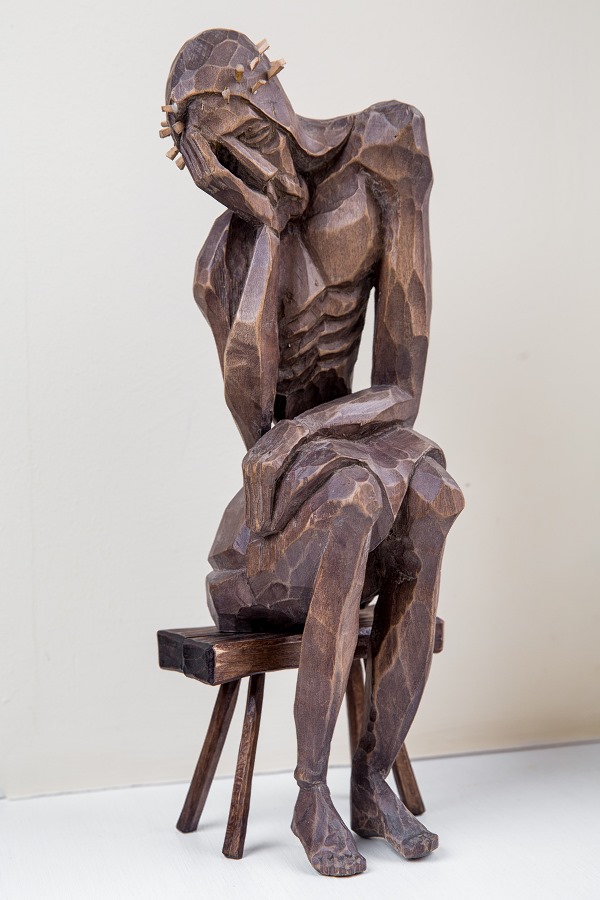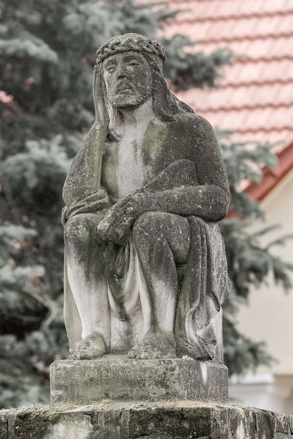 W latach 1509-11 Albrecht Dürer wykonał kartę tytułową do swego drzeworytniczego cyklu "Małej Pasji". Przedstawia ona postać Chrystusa siedzącego na grubo ciosanym kamieniu. Ubrany tylko w perisonium (przepaskę na biodrach), w koronie cierniowej na głowie otoczonej nimbem w kształcie krzyża. Postać Zbawiciela  opartego na prawej ręce pochylona jest do przodu w głębokiej zadumie. To moment oczekiwania na Ukrzyżowanie. Scena, która nie ma swego źródła ani w Ewangeliach kanonicznych ani apokryficznych, stała się dzięki ówczesnemu upowszechnieniu grafiki niezwykle popularna w sztuce Europy środkowej i wschodniej. Ma ona swój świecki odpowiednik w terrakotowym posążku padewskiego  rzeźbiarza Andrea Briosco zwanego Riccio, którą Dürer miał oglądać w czasie swej włoskiej podróży. Przedstawia ona utrudzonego robotnika w momencie odpoczynku. Jego znużenie ma charakter bardziej duchowy niż fizyczny.