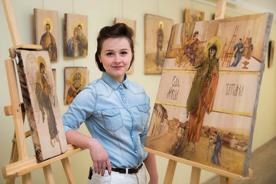 Ogólnopolski Plener Malarski w Boguchwale odbywa się już po raz dwunasty. W tym roku gości na nim 19 twórców. Jednym z nich jest właśnie Tatiana Talipowa, młoda artystka urodzona w Krzywym Rogu na Ukrainie. Właśnie obroniła dyplom magistra na Wydziale Artystycznym Uniwersytetu Marii Curie Skłodowskiej w Lublinie. Praca dyplomowa to 36 obrazów – współczesnych ikon, na których Tania zapisała swoje życie. Na surowych deskach, których urody nie chciała zakrywać malarskim gruntem, temperą z żółtkiem i winem uwieczniła swoich bliskich i ważne momenty z życia. Postaci świętych, przodków i rodziny przeplatają się obrazkami z Krzywego Rogu i innych, ważnych dla autorki miejsc.