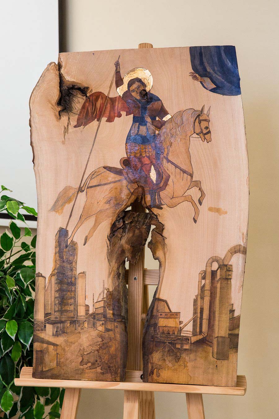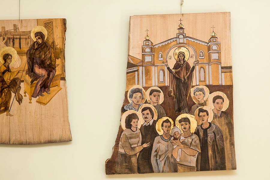 - Powstały z tęsknoty za bliskimi – mówi Tatiana. – Przyjechałam do Polski w ramach współpracy uczelni w Dniepropietrowsku z uniwersytetem w Lublinie. I zapragnęłam zostać. Ale brakuje mi rodziny. Tęsknota silna jest szczególnie w czasie świąt. Bywało w takie dni, że nie mogłam nawet pomodlić się w cerkwi, bo była zamknięta, dlatego zaczęłam malować bliskich. Tak powstało 36 ikon (na wystawie w Boguchwale są dwie mniej). Ostatnia pusta, bo to jeszcze nie koniec. Właściwie bronie się przed nazywaniem ich ikonami. Ikony może pisać tylko mężczyzna. Przedstawiają świętych. Ja wykorzystałam tylko technikę. Zostawiłam surowe drewno, widoczne sęki i nierówności. Dla mnie są piękne. Tak jak Krzywy Róg, chociaż to miasto zbudowane właściwie wokół wielkiej kopalni odkrywkowej. Zanim stamtąd wyjechałam, myślałam, że wszystkie miasta na świecie tak wyglądają. To najdłuższe miasto Europy, ma 140 km długości i nad całym unosi się smog. Ale właśnie tam się wychowałam.