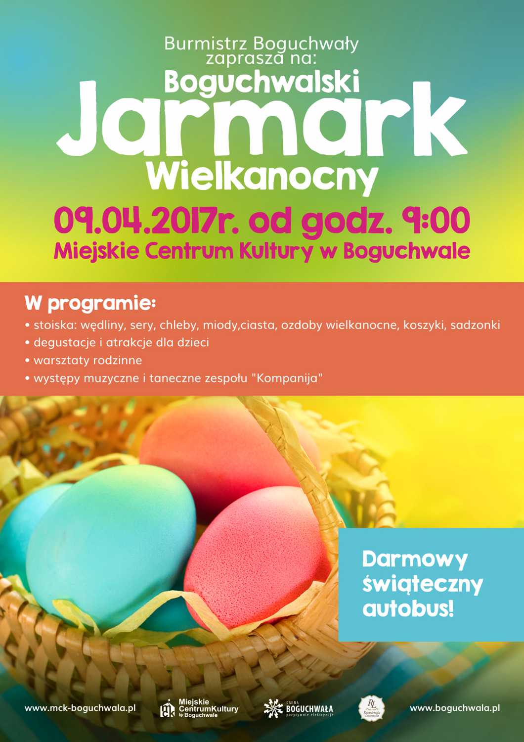 W programie m.in. : targi ogrodnicze, porady dietetyka, wielkanocne rękodzieło artystyczne, targi wyrobów regionalnych, stoiska kosmetyczne i porady wizażowi; atrakcje dla dzieci - wspólne malowanie wielkiej pisanki, warsztaty ozdób wielkanocnych; niespodzianka z Kraju Kwitnącej Wiśni.