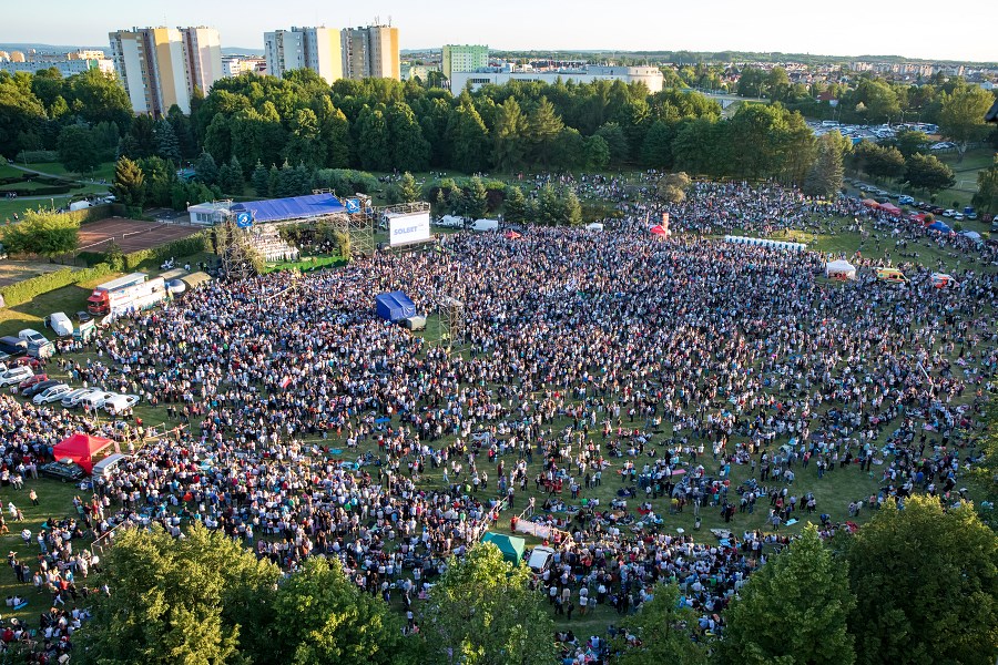 Koncert Jednego Serca Jednego Ducha, w tym roku już po raz 15. zorganizowany w Parku Sybiraków w Rzeszowie, wyrasta na jedno z najważniejszych wydarzeń kulturalnych stolicy Podkarpacia. To swego rodzaju fenomen społeczny, który w jednym miejscu i czasie gromadzi ponad 40 tys. ludzi, których różni niekiedy wszystko, ale łączy chęć wyśpiewania swej miłości do Chrystusa. Nie inaczej było w trakcie tegorocznego Bożego Ciała, kiedy to wśród gości znaleźli się także rodzice prezydenta RP; Janina Milewska - Duda i Jan Duda, profesorowie z Akademii Górniczo - Hutniczej w Krakowie.