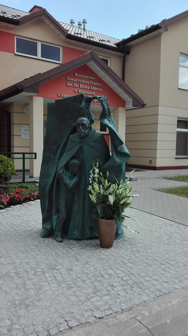To najładniejsza rzeźba, jaką Karol Badyna, prof. krakowskiej ASP wykonał dla Rzeszowa. Postać świętego nie stoi na postumencie, ale na chodniku – jakby witała wszystkich wchodzących do budynku Centrum Integracji Społecznej Rzeszowskiego Towarzystwa Świętego Brata Alberta, przypominając ideę niesienia pomocy potrzebującym. Pomnik został odsłonięty w sobotę, 17 czerwca i poświęcony przez bp. Jana Wątrobę, ordynariusza diecezji rzeszowskiej.