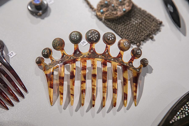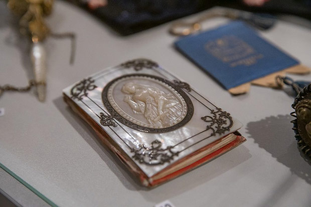 Ekspozycja uwzględnia akcesoria dzisiaj już zupełnie zapomniane, jako że dawno temu wyszły z użycia. Są nimi niezbędne dodatki do balowej toalety młodej damy wchodzącej do towarzystwa. Karnecik z rysikiem do notowania zamówionych tańców przybierał rozmaite formy od oprawionej w macicę perłową czy kość słoniową książeczki po kształt miniaturowego wachlarza. Panna wybierająca się na bal nosiła na palcu obrączkę z przymocowanym stożkowatym uchwytem na bukiecik. Ten przedmiot również bywał jubilerskim majstersztykiem z metalu, srebra, emalii, masy perłowej.