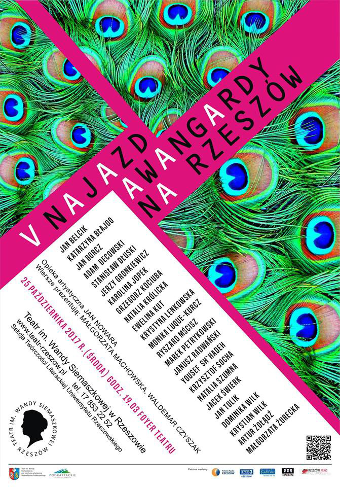 Dwudziestu czterech poetów z naszego regionu weźmie udział w piątym Najeździe Awangardy na Rzeszów, wydarzeniu promującym rodzimych twórców i popularyzującym poezję. Poezję artystów będą czytać aktorzy Małgorzata Machowska i Waldemar Czyszak w środę, 25 października w godz. 19.03-22.03.