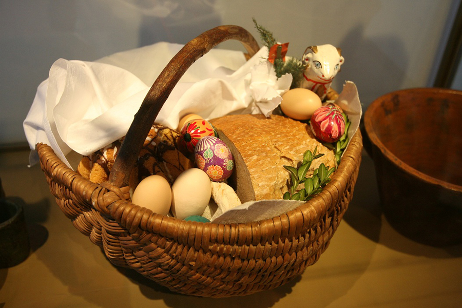 Tradycyjny koszyk wielkanocny składa się z Bożych Darów: chleba, jajka, soli, wędliny, sera, chrzanu, baby wielkanocnej, baranka oraz woda. Chleb święci się na pamiątkę chleba, który zstąpił z nieba, tj. Jezusa, i na upamiętnienie cudownego nakarmienia przez Niego rzeszy słuchających Go ludzi. Codziennie prosimy Boga w Modlitwie Pańskiej o chleb powszedni. A skoro mamy go z Bożej hojności, to dajemy go do poświęcenia. W Eucharystii postać chleba ma Ciało Pańskie, które jest pokarmem dla naszych dusz. Baranek wielkanocny jest symbolem Jezusa Zmartwychwstałego, ale także pokory i łagodności. Postawiony na stole przypomina, że Chrystus odkupił ludzi oraz że są oni przeznaczeni do wiecznego ucztowania na godach Baranka.