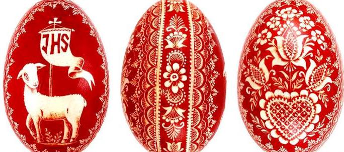Obyczaj wielkanocnego malowania jajek wywodzi się jeszcze ze starożytności, Słowianom znany był od X wieku. Początkowo jaja zdobiły wyłącznie kobiety (obecność mężczyzn niwelowała magiczne właściwości pisanek), sama czynność była jednym z warunków zachowania ciągłości świata. Dziś wszystkie kolorowe jaja wielkanocne nazywamy pisankami, kiedyś sporządzano jednak rysowanki, skrobanki (jaja kunsztownie rzeźbione), nalepianki i wyklejanki. Niegdysiejsze motywy na skorupkach miały też własną symbolikę. Kolor żółty miał odniesienie do motywów solarnych, zieleń oznaczała wiosenne odrodzenie przyrody i miłość. Szkarłat i biel były oznaką szacunku dla duchów opiekujących się domem.