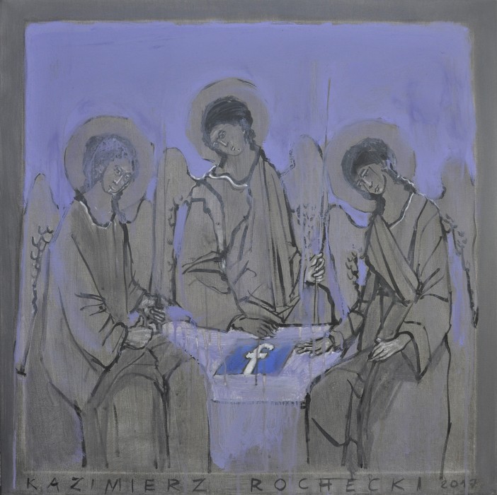 Wystawa zatytułowana „Dialog” Kazimierza Rocheckiego to „opowieści” o życiu, śmierci, miłości, samotności, wierze, nadziei i lęku. Znaczna część prac obejmuje tematy biblijne oraz relacje człowieka z Bogiem.