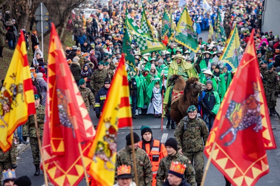 Wielotysięczny Orszak Trzech Króli - barwny i radosny przeszedł w poniedziałek ulicami Rzeszowa już po raz ósmy. To był największy orszak na Podkarpaciu, na który organizatorzy przygotowali 20 tys. koron, 2 tys. pierników, którymi rzeszowianie zajadali się na Rynku oraz 10 tys. śpiewników z kolędami. W tym roku Orszak szedł pod hasłem "Cuda, cuda ogłaszają", który jest fragmentem kolędy "Dzisiaj w Betlejem", ale i nieprzypadkowym nawiązaniem do historii Polski oraz 100. rocznicy cudu nad Wisłą. Także podziękowaniem za wszystko dobre, co zdarza się wokół nas na co dzień.