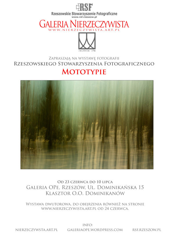 Grupową wystawę Rzeszowskiego Stowarzyszenia Fotograficznego pt. Mototypie można oglądać w Galerii OPe działającej przy Klasztorze oo. Dominikanów w Rzeszowie, w terminie 23 czerwca do 10 lipca 2013 r.