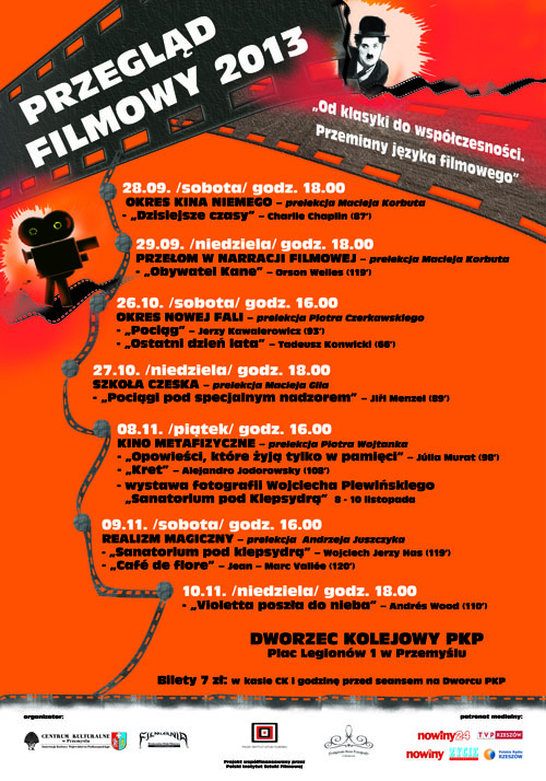 Centrum Kulturalne w Przemyślu zaprasza we wrześniu, październiku i listopadzie na Przegląd filmowy "Od klasyki do współczesności. Przemiany języka filmowego". Seanse odbędą się na dworcu kolejowym w Przemyślu. Przegląd zainauguruje 28 września film  „Dzisiejsze czasy” Charliego Chaplina. Bilety 7 zł  w kasie CK i godzinę przed seansem na Dworcu PKP. To prawdziwa gratka dla wszystkich miłośników kina.