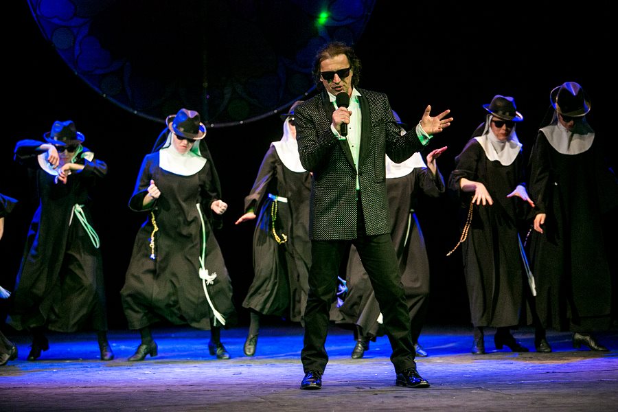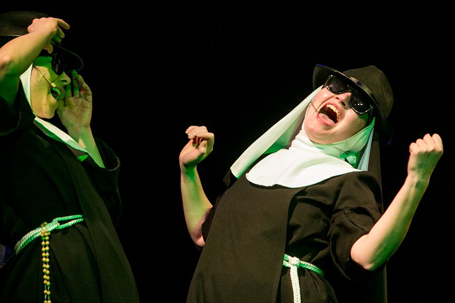 Aktorki rzeszowskiego teatru wcielające się w postaci siostruń musiały opanować choreografię, którą przygotował reżyser Jan Szurmiej, nauczyć się kilkunastu piosenek, jazdę na wrotkach i taniec na puentach. W spektaklu biorą udział również dziennikarze „newsowi” TVP Rzeszów, którzy relacjonują wydarzenia z Hoboken. Sekwencje filmowe z ich udziałem oraz zakonnic są częścią spektaklu, multimedialnymi „wstawkami”, które po części wyjaśniają widzom fabułę.