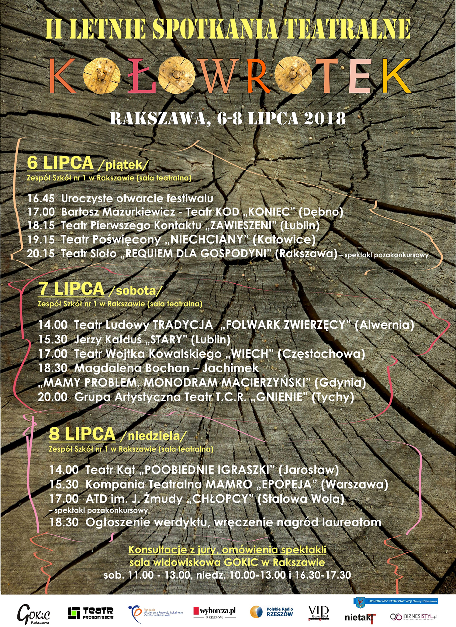 II Letnie Spotkania Teatralne „Kołowrotek” w Rakszawie, 6-8 lipca 2018 - Program