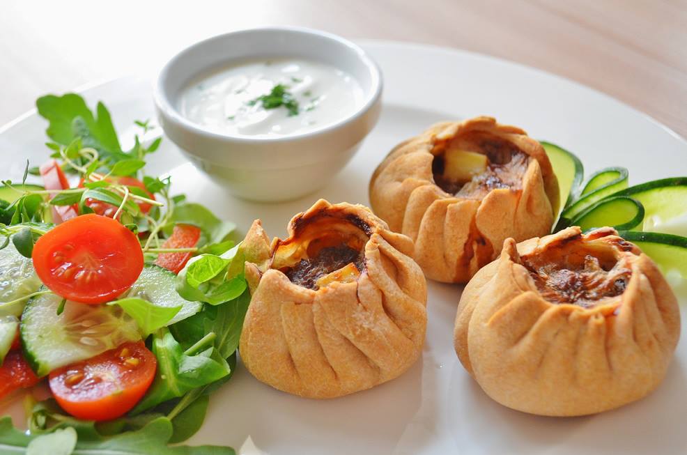 Pieriemiacze - pieczone sakiewki z mięsem wołowym i ziemniakami (fot. Wschód Food)