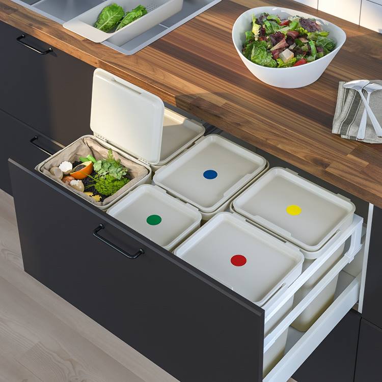 Dużo się mówi o niemarnowaniu żywności, ale każdemu zdarza się czasem ugotować zbyt duży obiad lub po prostu zapomnieć o produktach w lodówce. Jest na to sposób. Warto podpisać dane partie jedzenia i umieścić je w przezroczystych pojemnikach – tak, aby było je dobrze widać. Gdy jednak żywność ewidentnie się zepsuje, pozostaje nam przynajmniej właściwie ją posegregować. Do tego przydadzą się odpowiednie kosze do segregacji na poszczególne frakcje. Gdy mieszkamy z kilkoma domownikami, dobrze sprawdzą się naklejki przypominające do czego służy dany pojemnik.